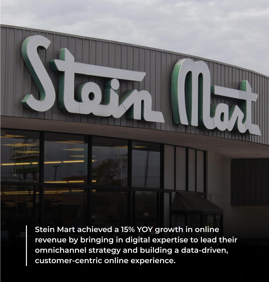 Our efforts to elevate Stein Mart’s online experience paid off. The company saw a 15% YOY growth in online revenue and achieved remarkable alignment in their omnichannel strategy.
